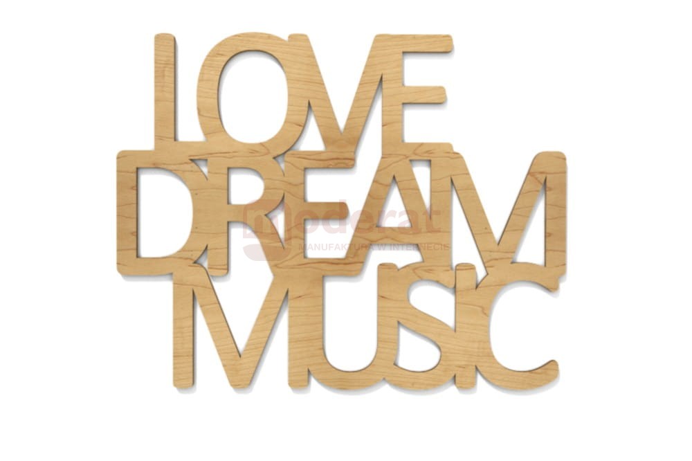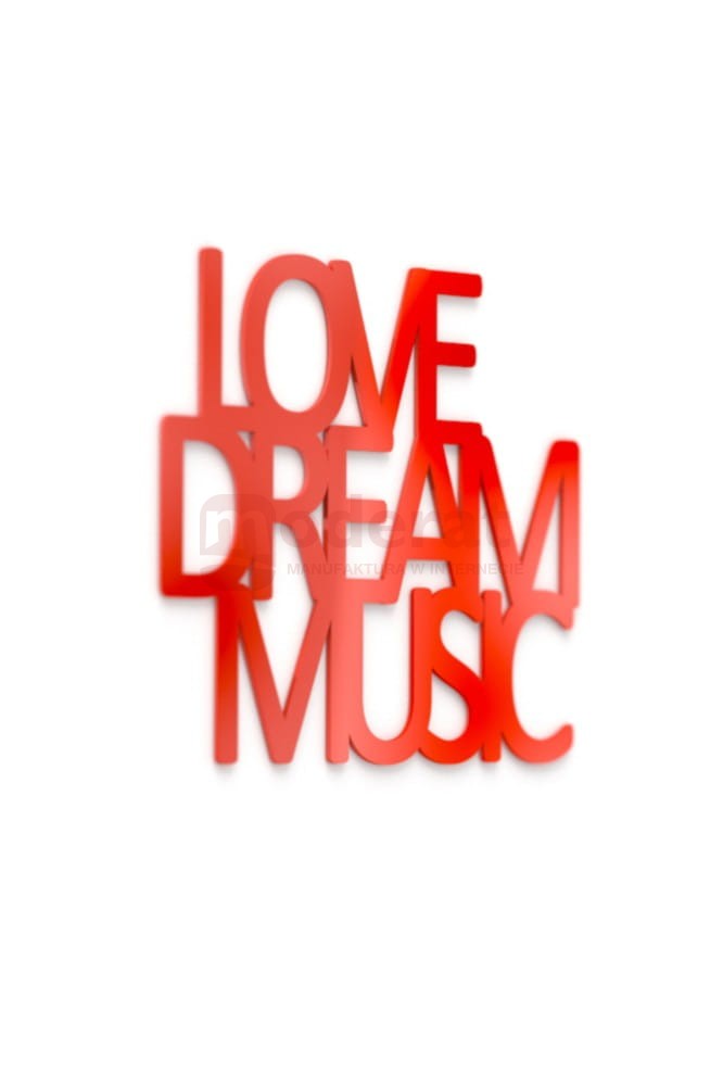Love dream music - projekt wycięty laserem z plexi. Dekoracja 3d, alternatywa dla płaskiej naklejki na ścianę.